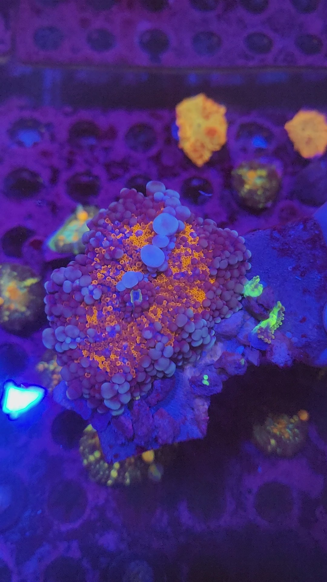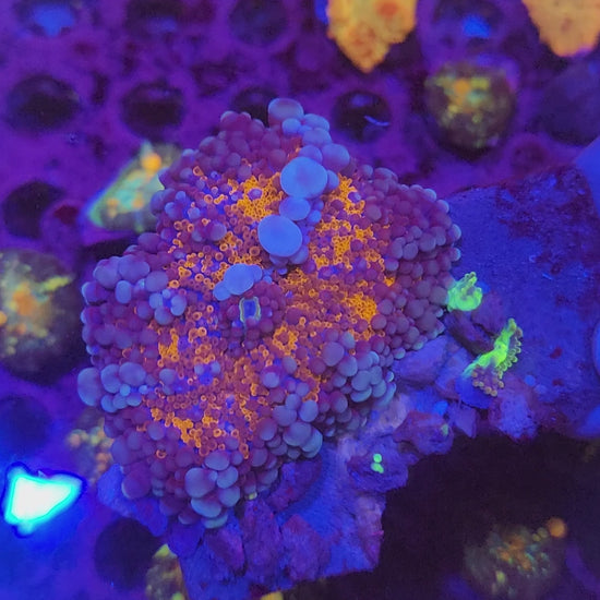 Introducing the MAMA Wumbo Jumbo Bounce Mushroom, a truly unique addition to your aquatic ecosystem! This vibrant coral features an eye-catching design that stands out in any reef tank.