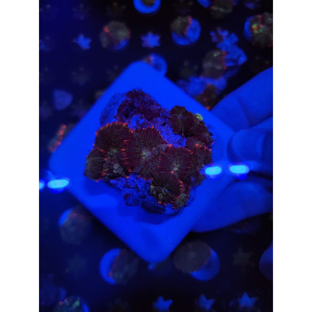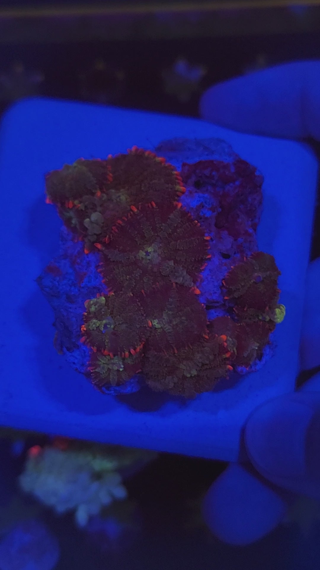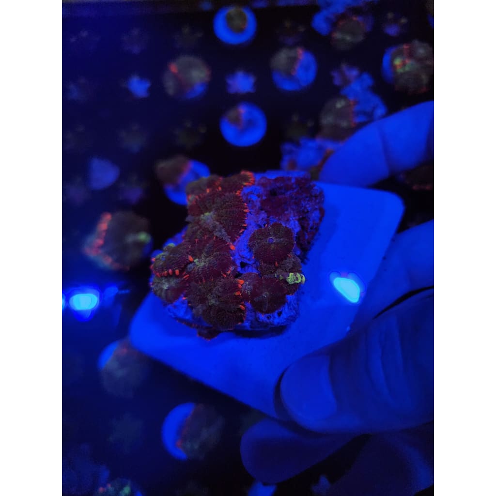 Each colony is WYSIWYG (What You See Is What You Get), ensuring that you receive the exact specimen showcased. With its captivating patterns and textures, the Mardis Gras Bounce Mushroom is not just a coral; it's a living work of art that will enhance the beauty of your underwater world.